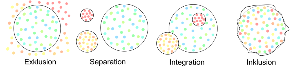 Unconditional equality and participation in a society. With inclusion, not only do people adapt to a prevailing system, the system also adapts to the people.